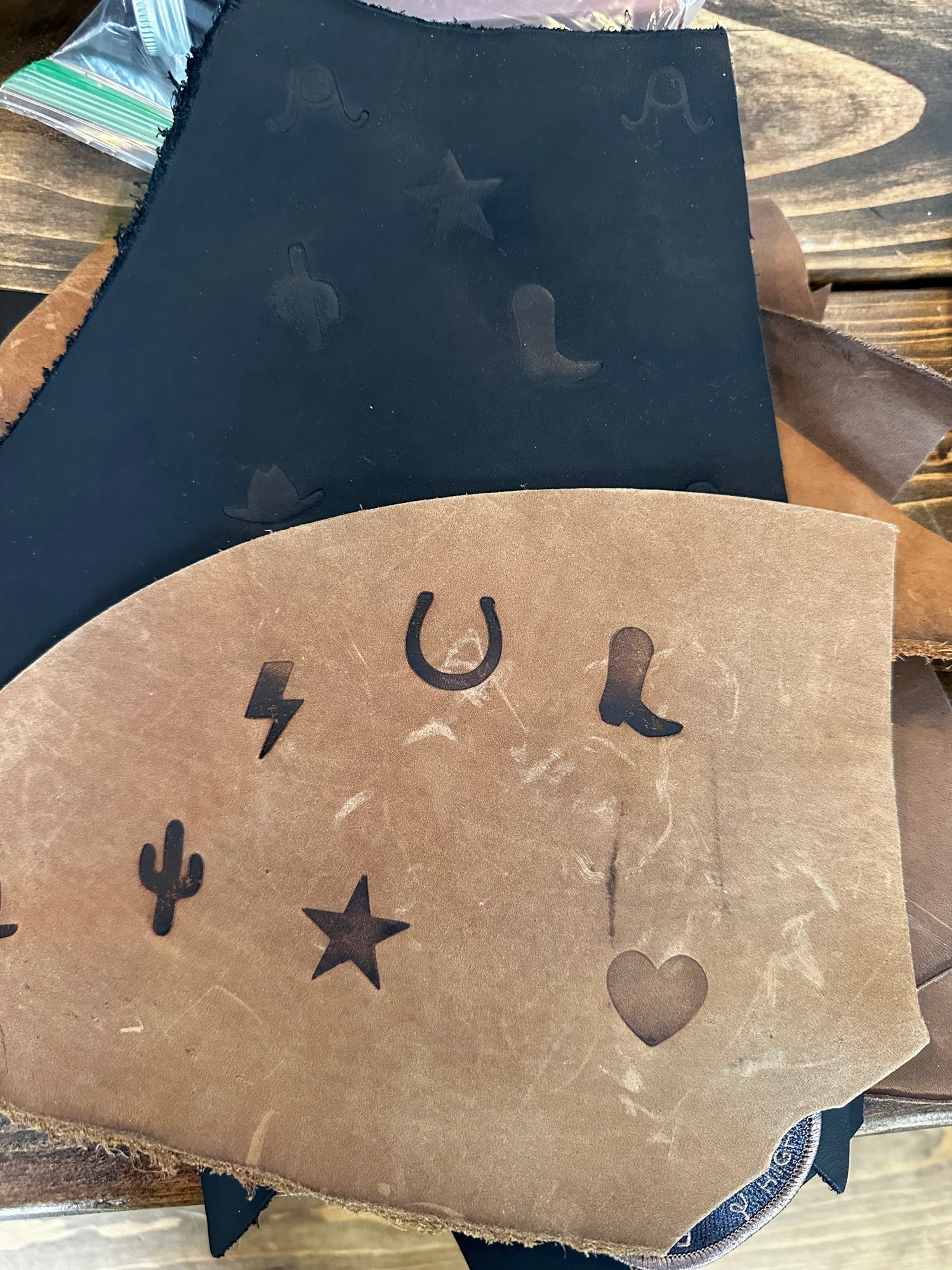 2. CUSTOMIZE your leather gear with over 190 unique branding irons. Personalize your design by arranging letters, symbols, and numbers on a 3D model of the gear you chose. Your vision, handcrafted into reality.